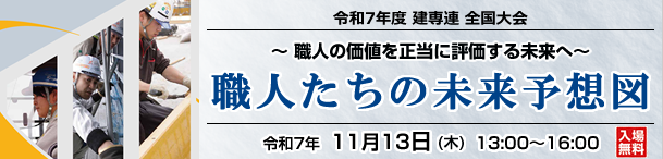 | 【主催】 (一社)建設産業専門団体連合会 【後援】 国土交通省、厚生労働省 【協賛】 (一財)建設業振興基金、(独)勤労者退職金共済機構、(公財)建設業福祉共済団、 東日本建設業保証(株)、西日本建設業保証(株)、北海道建設業信用保証(株)、 (一社)日本建設業連合会、(一社)全国建設業協会、(一社)全国中小建設業協会、 建設業労働災害防止協会、(職)全国建設産業教育訓練協会 (順不同) |